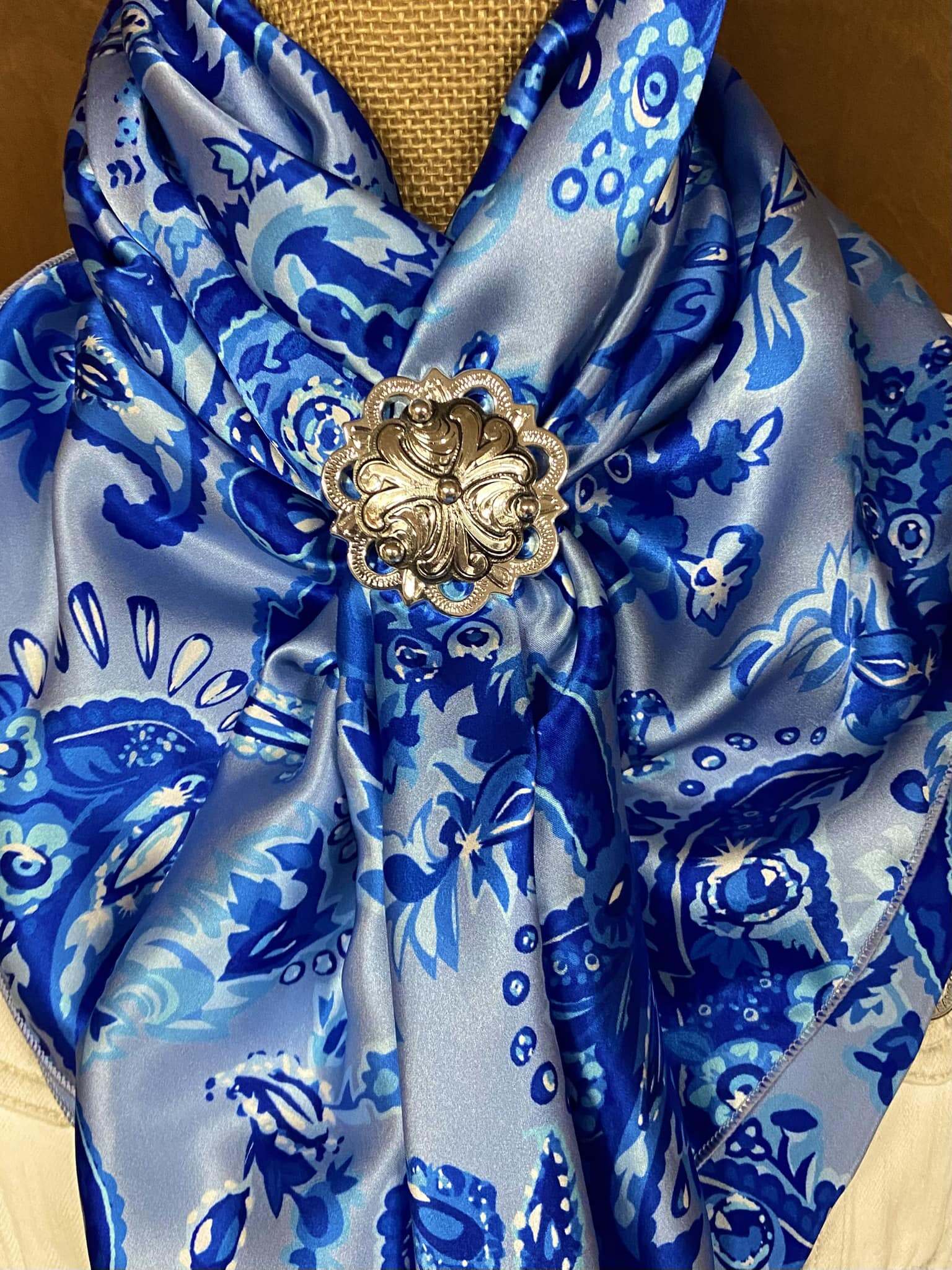 #PD152SILK - 100% SILK CHARMEUSE - Shades of Blue Floral Paisley $55